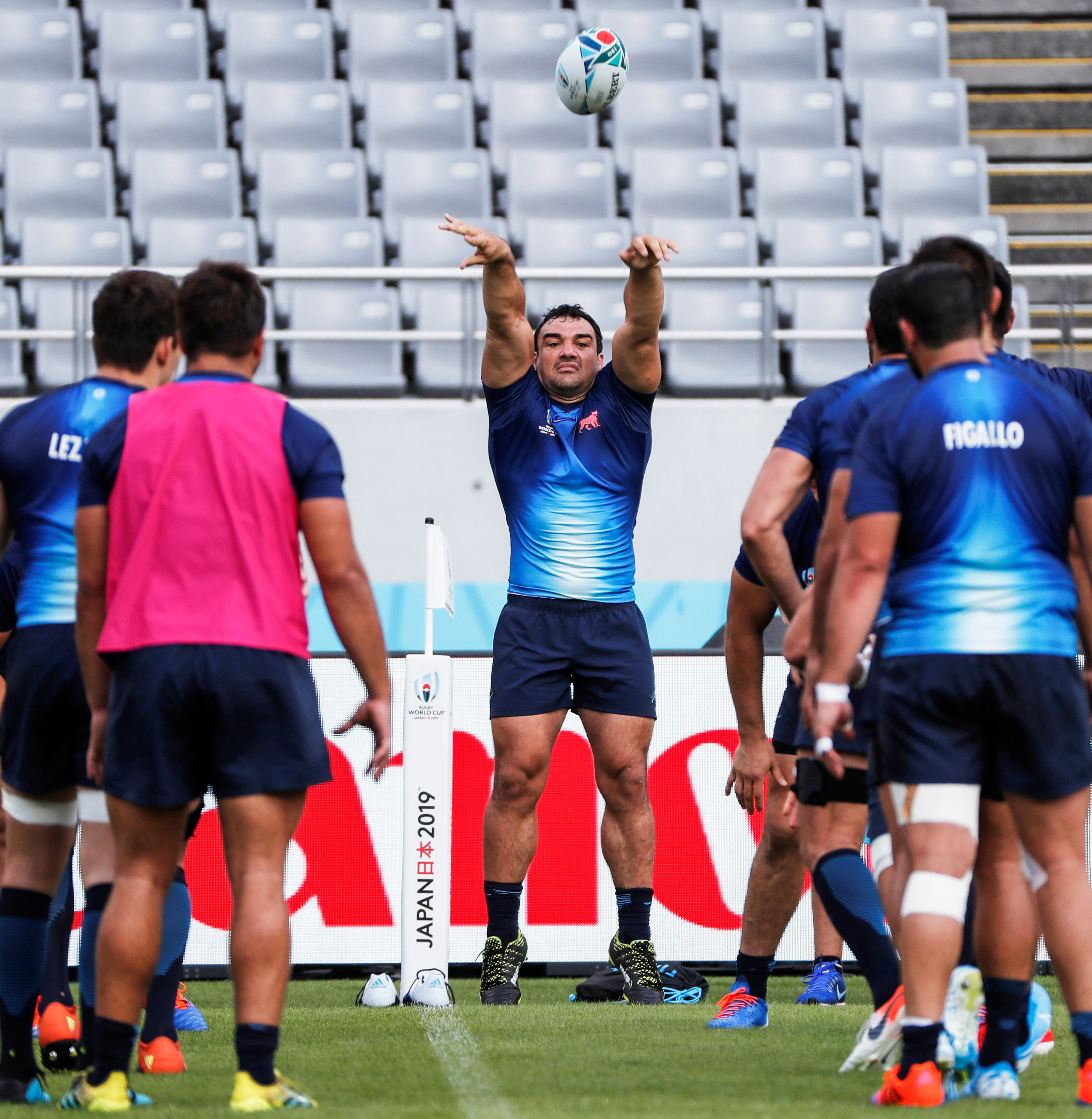 Experiencia. Agustín Creevy ensaya en el line, durante el captain"s run, el último entrenamiento del equipo antes del debut en el Mundial.