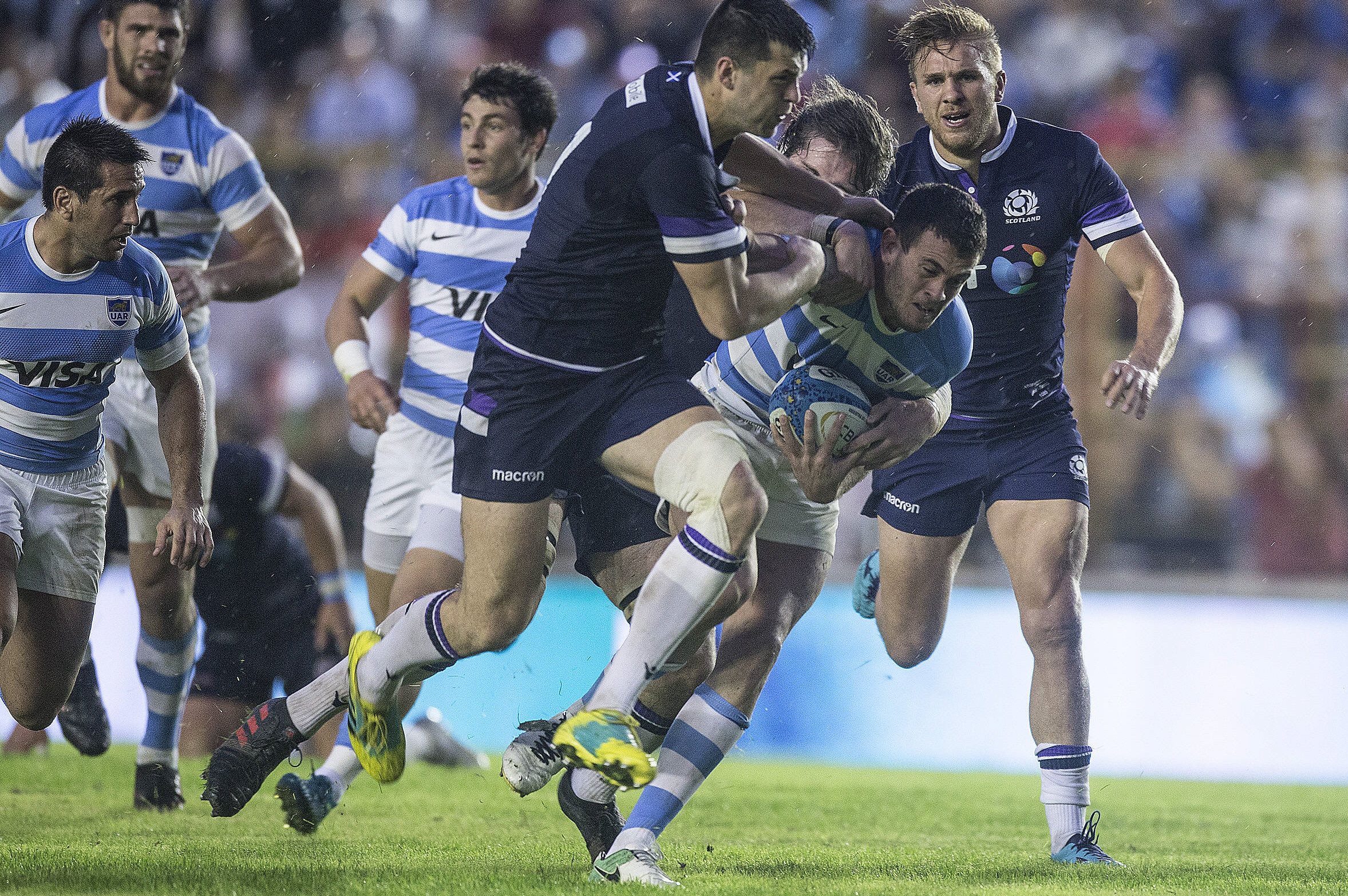 Los Pumas sufrieron ayer una contundente derrota frente a su par de Escocia por 44-15 en la despedida del entrenador Daniel Hourcade, cerrando la temporada internacional de junio con un saldo de tres derrotas, dos de ellas frente a Gales, en su peor producción en los últimos años. El encuentro se disputó en Chaco. Los Pumas perdieron 20 de los últimos 23 partidos.