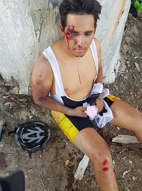 Fernando Rivero y Maximiliano Luna rodaron a la banquina y debieron ser atendidos por los médicos, mientras que el conductor no paró.