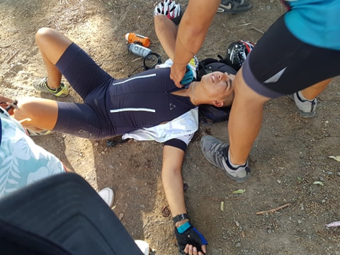 Dos ciclistas tuvieron que recibir asistencia médica después que un auto los rozara y cayeran al suelo.