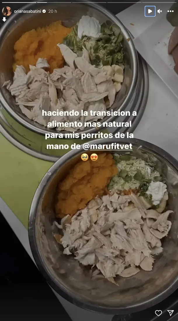 Oriana Sabatini revolucionó las redes al mostrar el menú de sus perros Kaia y Bowen y recomendó una veterinaria nutricionista, quien modificó la dieta de sus animales.