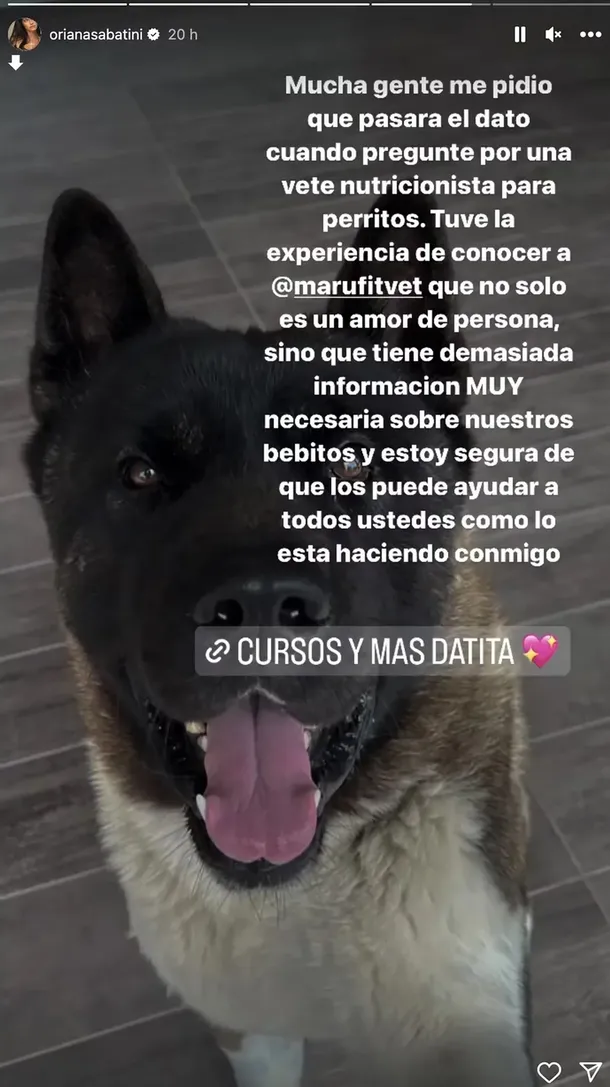 ”Mucha gente me pidió que pasara el dato cuando pregunté por una veterinaria nutricionista para perritos. Tuve la experiencia de conocer a Maru, que no solo es un amor de persona, sino que tiene demasiada información muy necesaria sobre nuestros bebitos. Y estoy segura de que los puede ayudar a todos ustedes como lo está haciendo conmigo”, contó la cantante en otra historia de Instagram.
