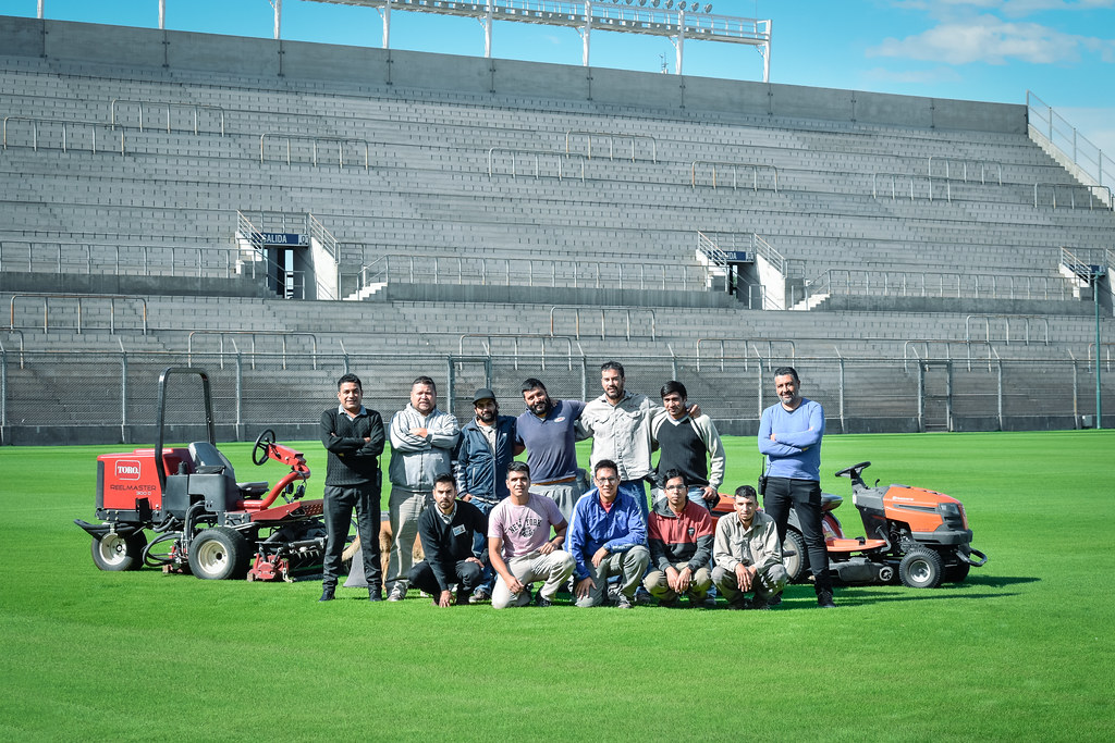 “A los 7 días de sembrar, el césped alcanza una altura de 6 cm y a partir de ahí comenzamos a cortarlo gradualmente para que no se ponga amarillo”, dijo Rolando Vargas y agregó que "de la etapa de resiembra estamos en los dos tercios. Ahora viene el proceso de aplicar fertilizantes a base de sales para cuando esté firme la planta".