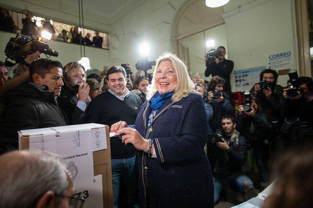 Luego de almorzar junto con Mauricio Macri en la quinta Los Abrojos, la primera precandidata a diputada nacional por el oficialismo, Elisa Carrio, votó en la escuela de Jornada Completa Nº 03 D.E. 01 “Onésimo Leguizamón” a las 15.45.