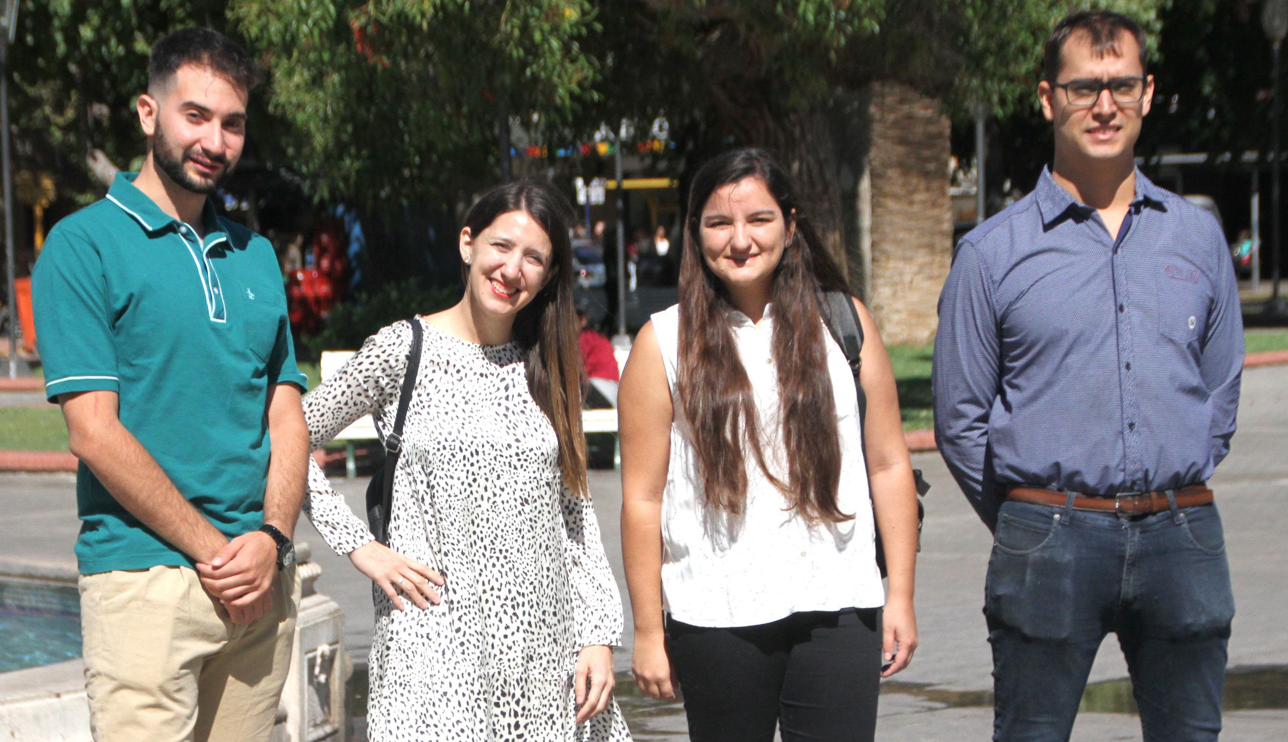 Becarios. Desde la izquierda, Lisandro Orelo, Teresa Arias, Gabriela Lucero y Mariano Carmona, los jóvenes profesionales que viajarán a Francia. Nicolás Buonamico no pudo estar presente para la foto.