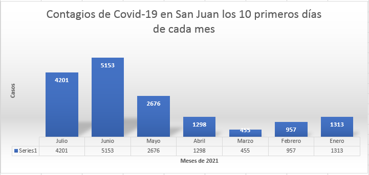 Luego de 3 meses de aumento de decesos y contagios de coronavirus en San Juan, en julio volvió a cambiar la tendencia si se consideran los 10 primeros días de cada mes en lo que va del año.