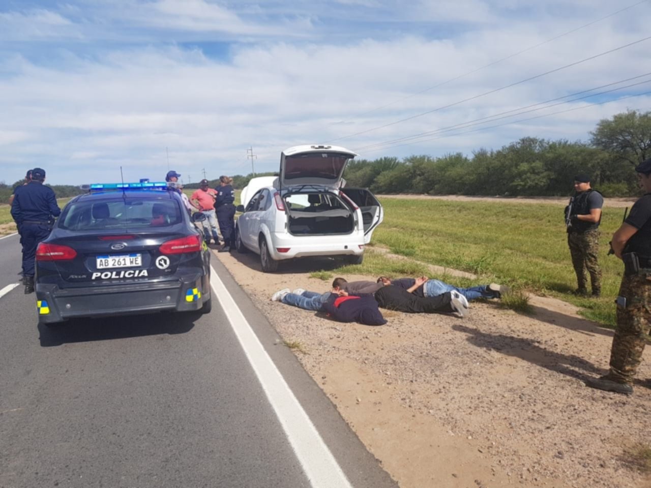 Las fuentes informaron que luego de tres kilómetros de persecución y a siete de San Gerónimo lograron detenerlos y requisar el vehículo donde se encontró una importante suma de dinero. Sin embargo, no hallaron un arma entre sus cosas, por lo que suponen fue desechada en algún tramo del viaje. Además, los uniformados solicitaron un móvil de la División de Lucha Contra el Narcotráfico, ante la posibilidad de que llevasen algún tipo de droga.