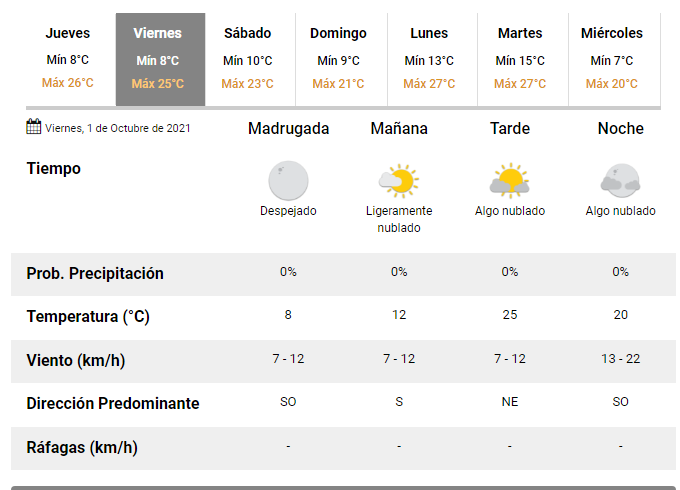 Desde el Servicio Meteorológico Nacional, informaron que para este viernes, la máxima trepará hasta los 25°C mientras que la máxima caerá hasta los 8°C.