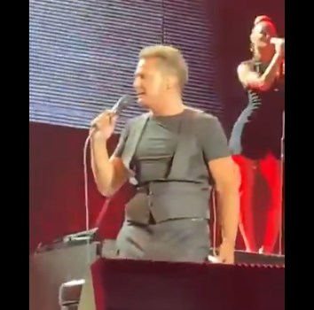 Sucedió en el segundo tramo del show, cuando el músico ya lucía un look más informal, con remera negra y chaleco. En la primera parte, cuando viste de traje, el cantante había realizado el ademán de lanzar un golpe mientras miraba para el sector donde estaba ubicado el sonidista.