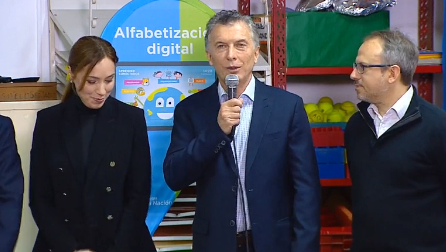 En la mañana de este martes, el presidente Mauricio Macri se mostró junto a la gobernadora María Eugenia Vidal, en un acto en la provincia de Buenos Aires. Desde Tres de Febrero, lanzaron el programa Aprender Conectados para el nivel inicial y resaltaron la política de educación que llevan adelante.