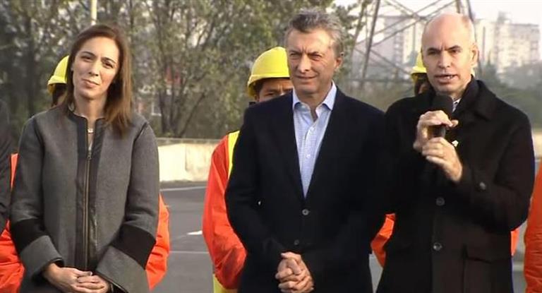 El presidente Mauricio Macri encabezó la ceremonia de inauguración de una mano del nuevo viaducto del Puente La Noria en Buenos Aires, y aprovechó para citar al expresidente Juan Domingo Perón y redoblar un pedido histórico.