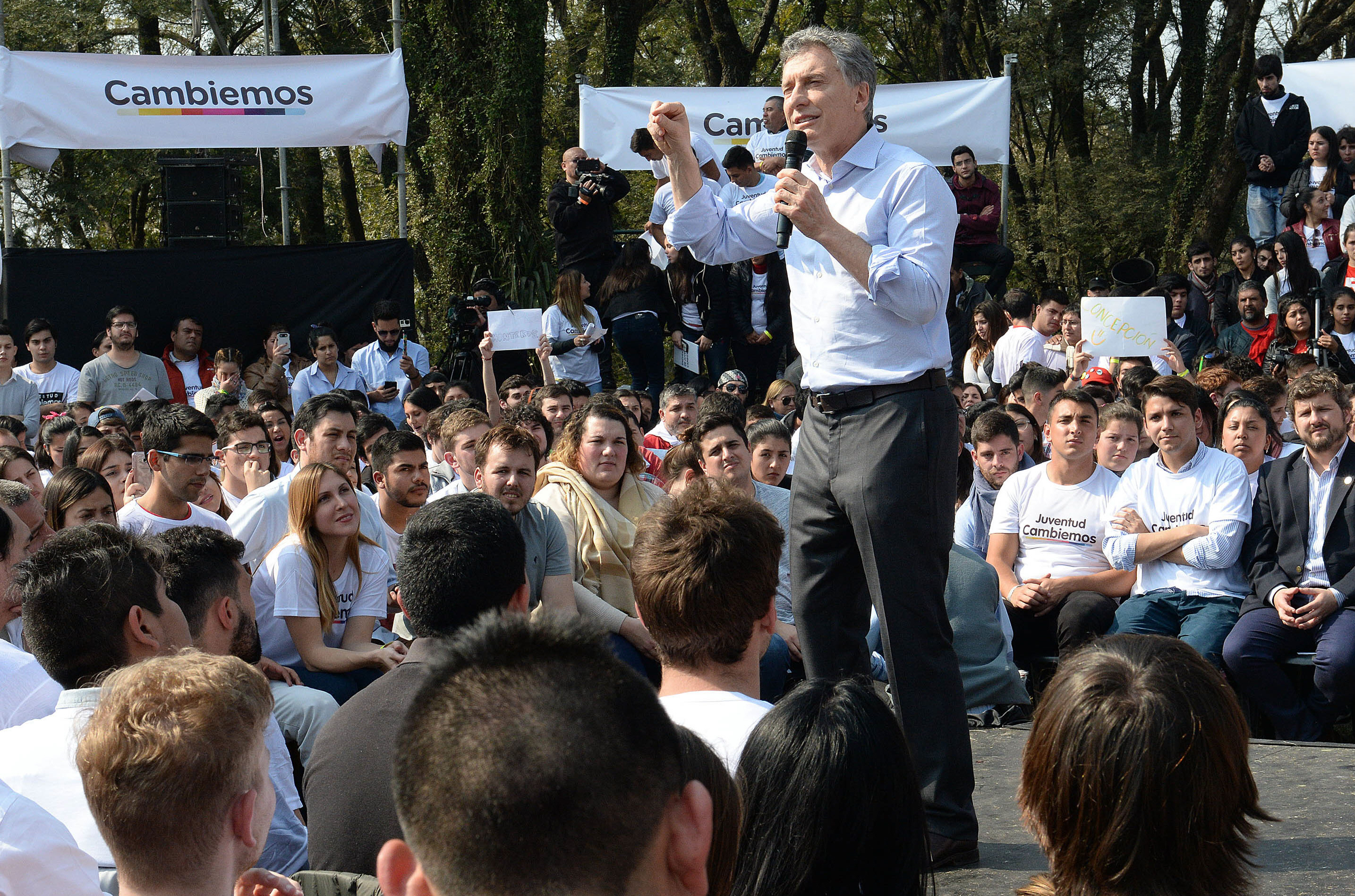 Macri cerró el primer Encuentro Regional del noroeste argentino de la Juventud Cambiemos, que se realizó en la residencia universitaria de la Universidad Nacional de Tucumán, en Horco Molle, Yerba Buena, desde donde arengó a más de 1.500 militantes que llegaron desde diferentes puntos del país para que trabajen fuerte para las Primarias Abiertas, Simultáneas y Obligatorias (PASO) del 13 de agosto.