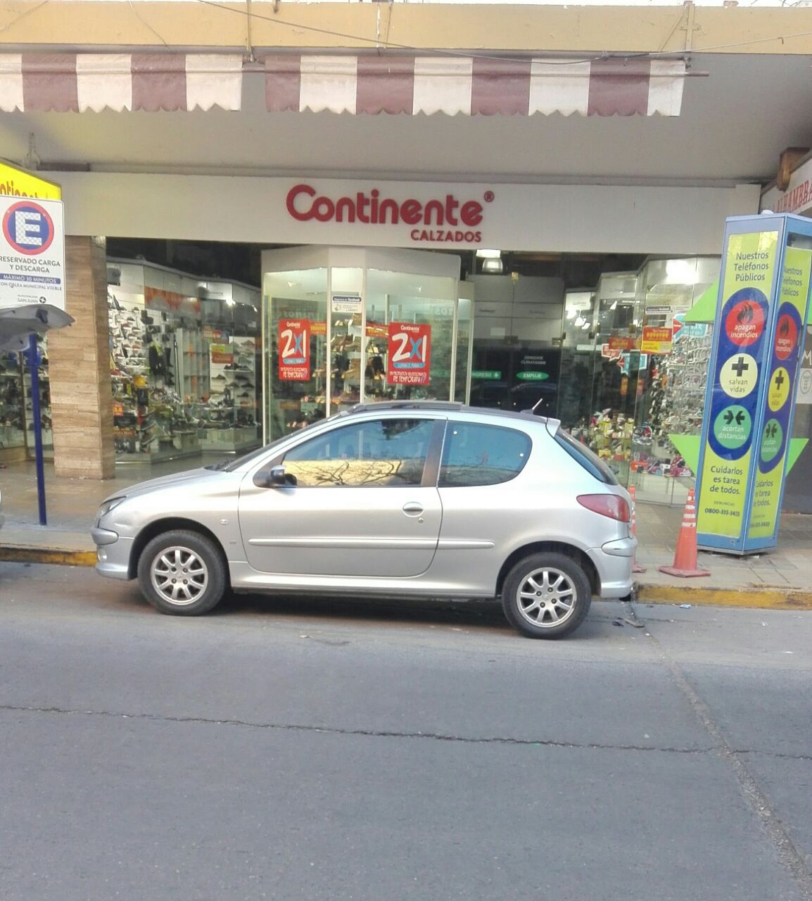 Una lectora envió una imagen y el siguiente comentario: "Estoy indignada xq este Peugeot 205 viene estacionado hace 3 días!! No nos deja descargar, soy dueña de un local hoy vine temprano xq tengo que bajar mercadería y no pude!!! Cumplamos las señales de tránsito!!! El cartel dice CARGA y DESCARGA máximo de permanencia 30 minutos!!!!!! NO toda la mañana!!!!! Es en la calle General Acha y Rivadavia, Capital".