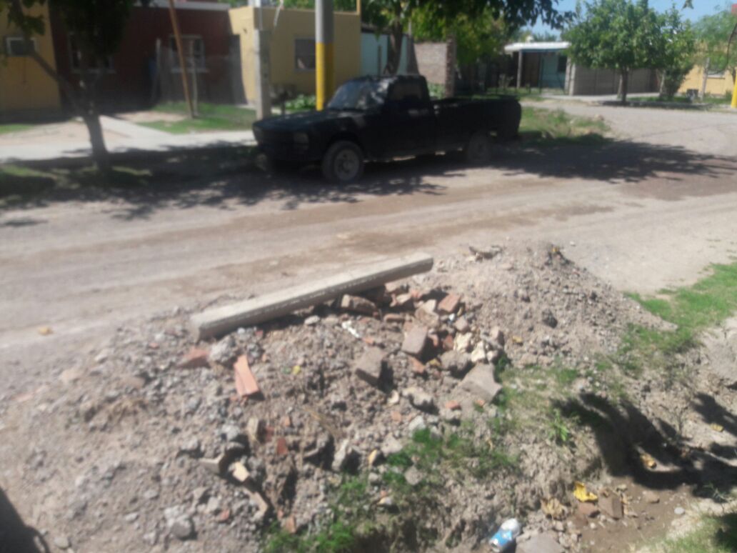 “Así está la calle del barrio, llena de escombros. Hace 4 meses que la calle está colmada de escombros y la Municipalidad no aparece”.