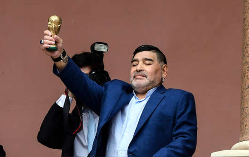 El campeón del mundo en 1986 fue recibido por el subsecretario general de la Presidencia, Miguel Cuberos, quien lo tomó de un brazo y lo ayudó a desplazarse. Del otro brazo lo tomó Víctor Stinfale, también abogado del "Diez". Maradona fue operado recientemente de una de sus rodillas y tiene dificultades para trasladarse a pie.