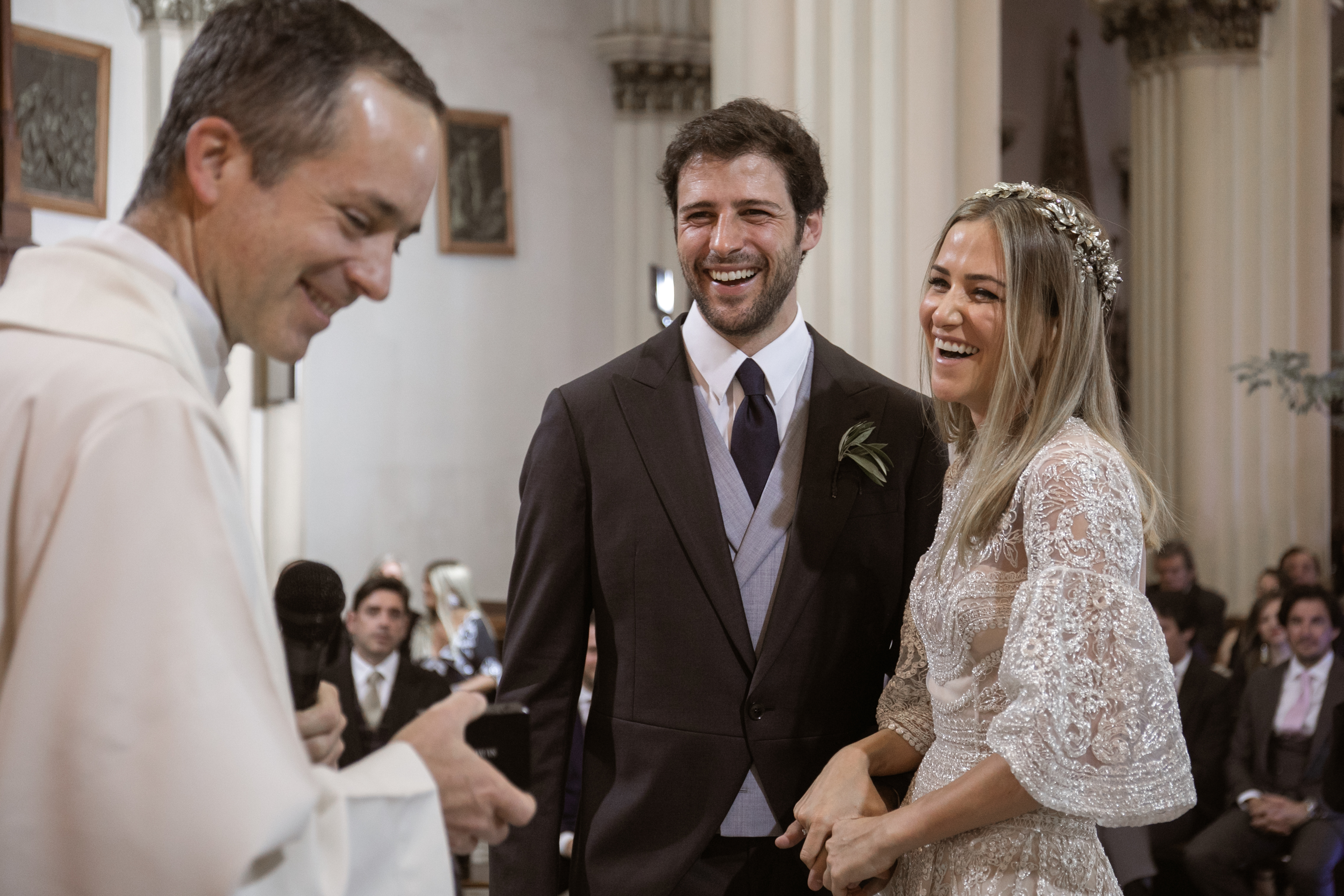 La ceremonia religiosa comenzó a las 17, con la entrada de Francisco Javier y su mamá Pilar de la Fuente Orduña, según la tradición española. En el altar lo esperaba su papá, Javier Cocheteux Tierno y la mamá de Mili, María Cecilia Zunino de Senetiner.