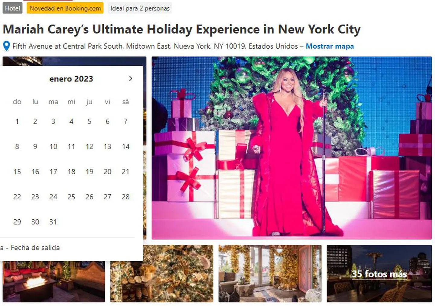 El paquete también incluye la visita a distintas atracciones turísticas de la ciudad. La experiencia única se podrá reservar por orden de llegada a partir del 14 de diciembre por un precio de 20,19 dólares, en honor al año en que la canción “All I Want for Christmas is You” llegó al número 1 en la lista Billboard Hot 100.