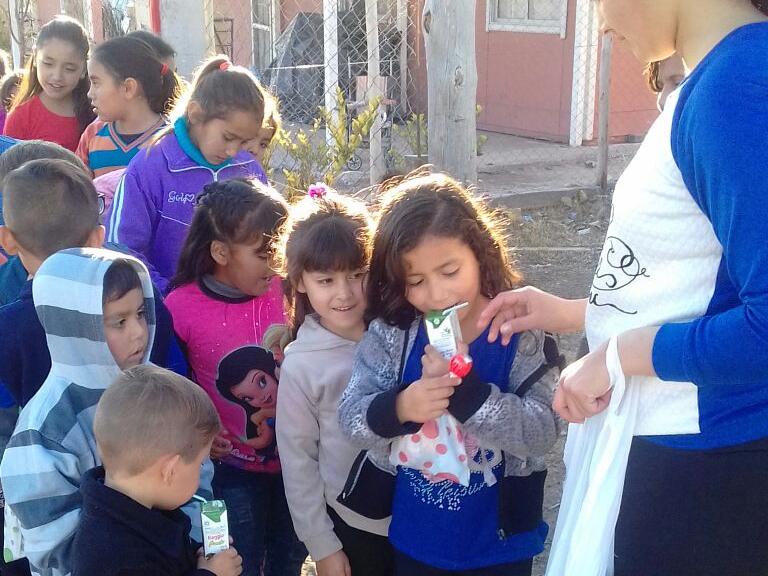 Con sonrisas en sus caras, así se fueron los niños que tuvieron un festejo masivo por su cumpleaños. El grupo solidario Manitos Sucias organizó un evento para todos los niños que viven en el Médano de Oro, más precisamente en la villa Cristo Pobre.