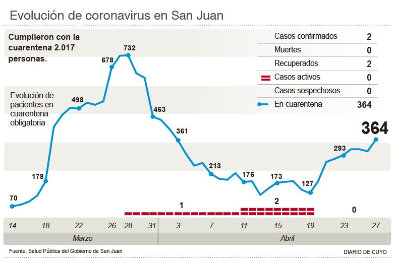 Por otro lado, el Ministerio de Salud informó ayer que en San Juan no hay casos sospechosos, tras dar negativo 9 análisis.