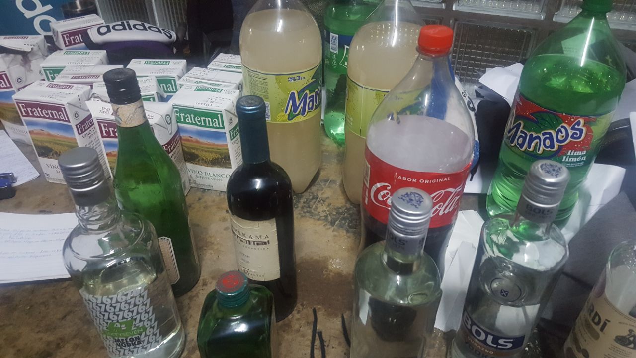 Parte de las bebidas que fueron decomisadas por la Policía.