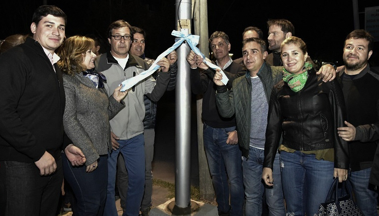 El intendente Franco Aranda inauguró obras de iluminación en la zona de Trinidad. Los beneficiados son los vecinos que viven en las zonas aledañas de calle Brasil hasta Lateral de Circunvalación donde colocaron artefactos de avanzada.
