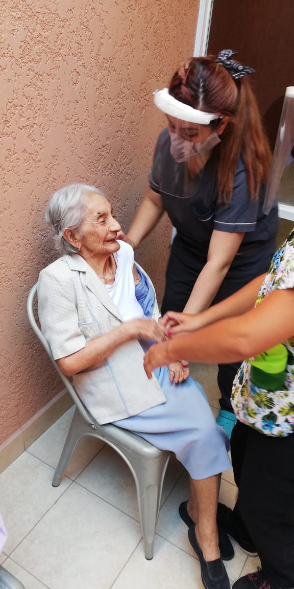 En el geriátrico Villa Salud los esperaba Rosa Gordillo, una hermosa mujer de 105 años que vivió buena parte de los hechos más importantes del siglo pasado y que en la vacuna tiene la chance de aferrase más a la vida.
