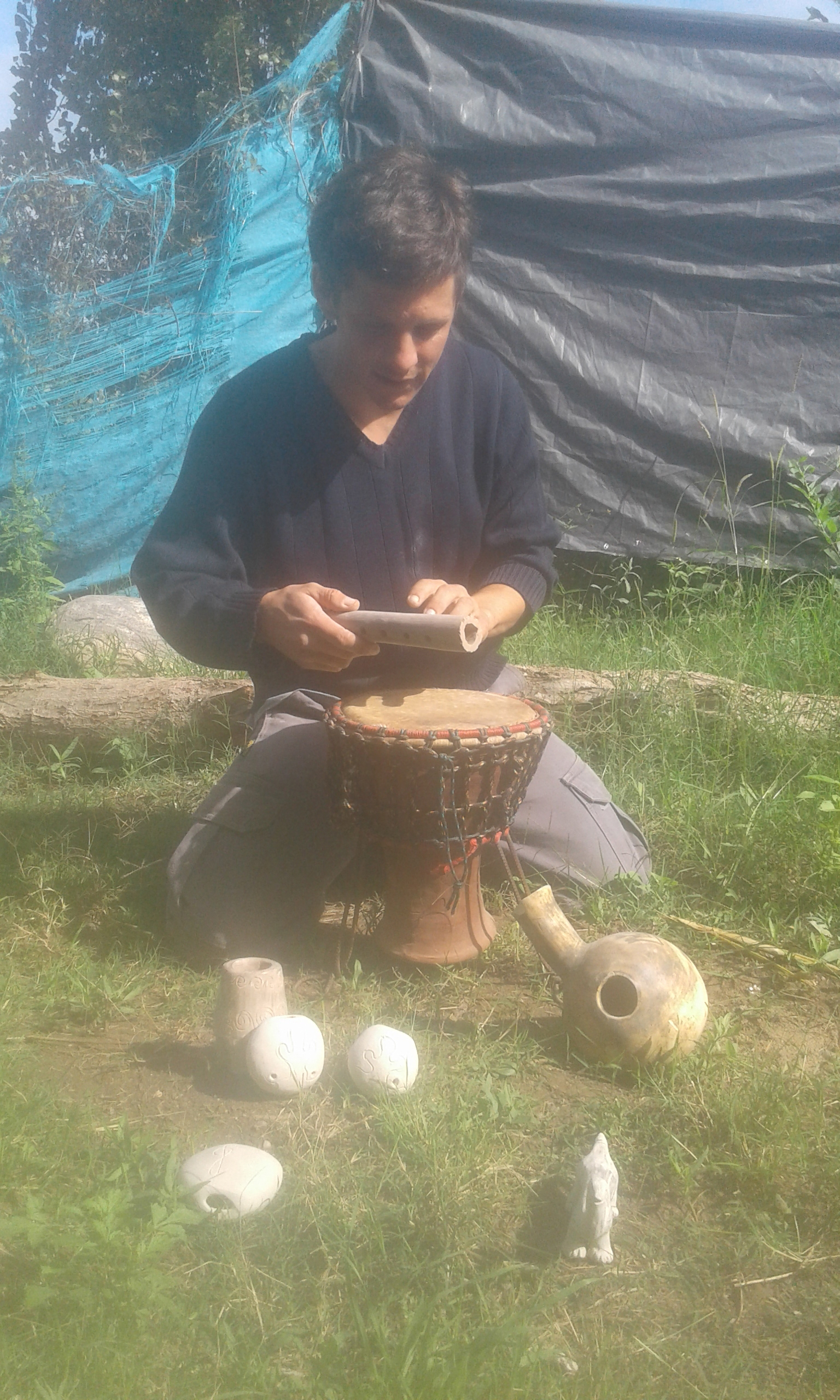 El joven músico vallista también realiza talleres para que los niños de su departamento puedan incorporar las ancestrales costumbres musicales. “Lo más gratificante de todo es cuando vez un grupo de chicos de la Majada que ya empiezan  fabricar sus propios tamborcitos, sonajas, ocarinas, flautas, quenas y maracas. Luego tenemos reuniones de ensamble para que aprendan a tocarlos. Ese tipo de conexión y transmisión de conocimientos no tiene precio”. Técnicamente el nuevo horno permite elevar la temperatura a 1.200-1.300 grados, y eso permite esmaltar y cristalizar los instrumentos mediante una mezcla de óxidos que se le adiciona. “Antes, mediante el horneado en el suelo me resultaba muy difícil llegar a los 800 grados de manera uniforme y tenía que buscar mucha leña y abono. Ahora puedo ir subiendo la temperatura de a poco, de manera pareja. Luego el gruñido (pulido de la pieza) lo hago con huesos y piedras, lo que le brinda al instrumento un hermoso color cuero”. El próximo paso del músico vallista será diseñar un set de instrumentos de percusión y un set de instrumentos areófonos de autor, para participar en ferias nacionales y regionales. “Mis productos están la venta en muchos lugares del departamento, los precios varían según la dedicación que tiene cada una de las obras. Un pukuy chico (especie de silbato) de medio kilo está en 100 pesos. Mientras que un tambor de arcilla más el cuerpo de cerámica y el parche de cuero de chivo está alrededor de los 2.300 pesos”, concluyó.