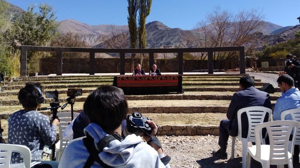Ante una imponente escenografía natural, con los cerros de Purmamarca a sus espaldas, el jefe de Estado abordó nuevamente las circunstancias internacionales que provocaron una nueva corrida del dólar en la Argentina.