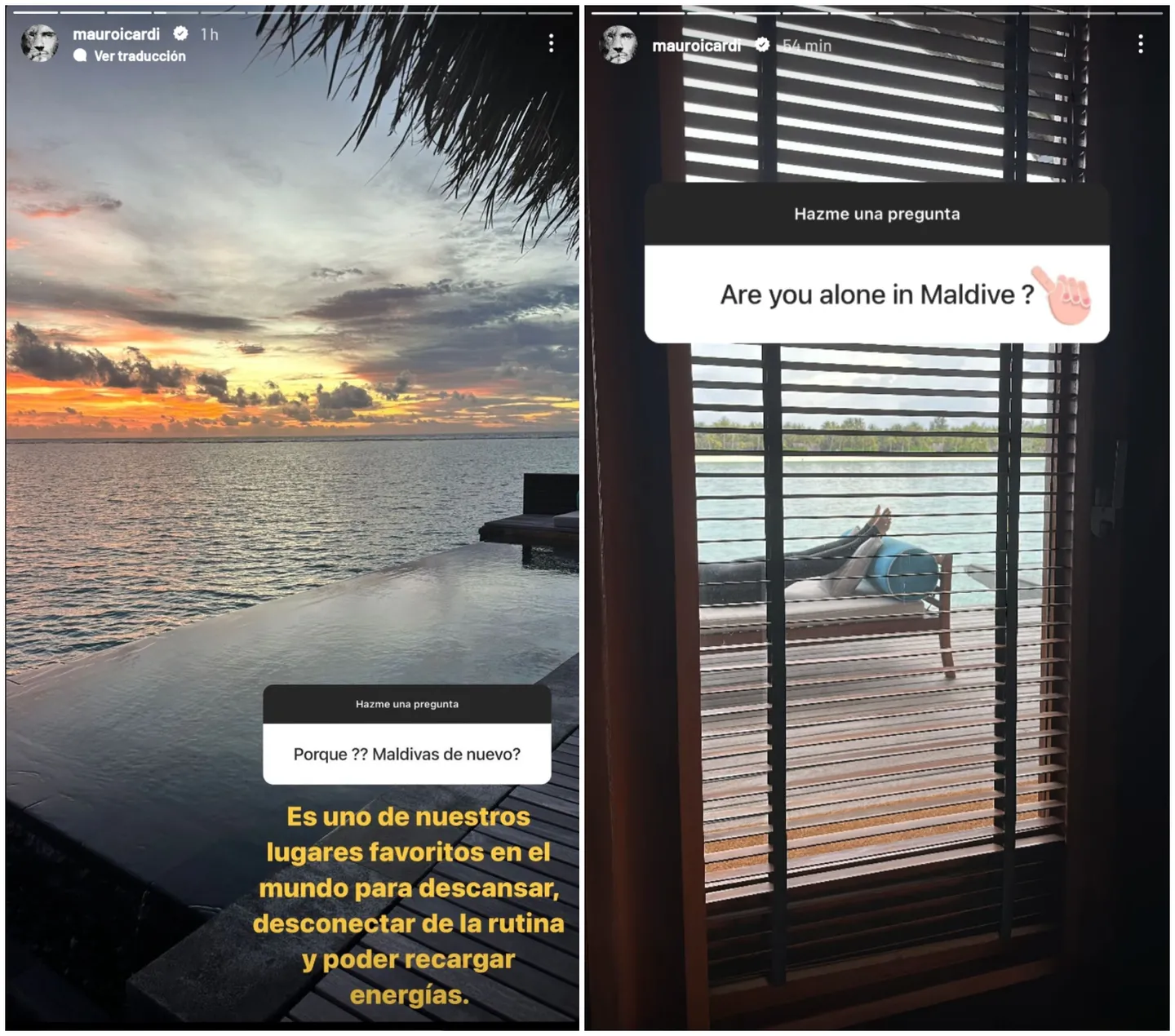 El deportista utilizó sus historias de Instagram para interactuar con sus seguidores y dejar que ellos le hagan diversas preguntas. En una de sus respuestas, Icardi explicó con un romántico mensaje por qué eligieron con Wanda volver a viajar a Maldivas: “Es uno de nuestros lugares favoritos en el mundo para descansar, desconectar de la rutina y poder recargar energías”.