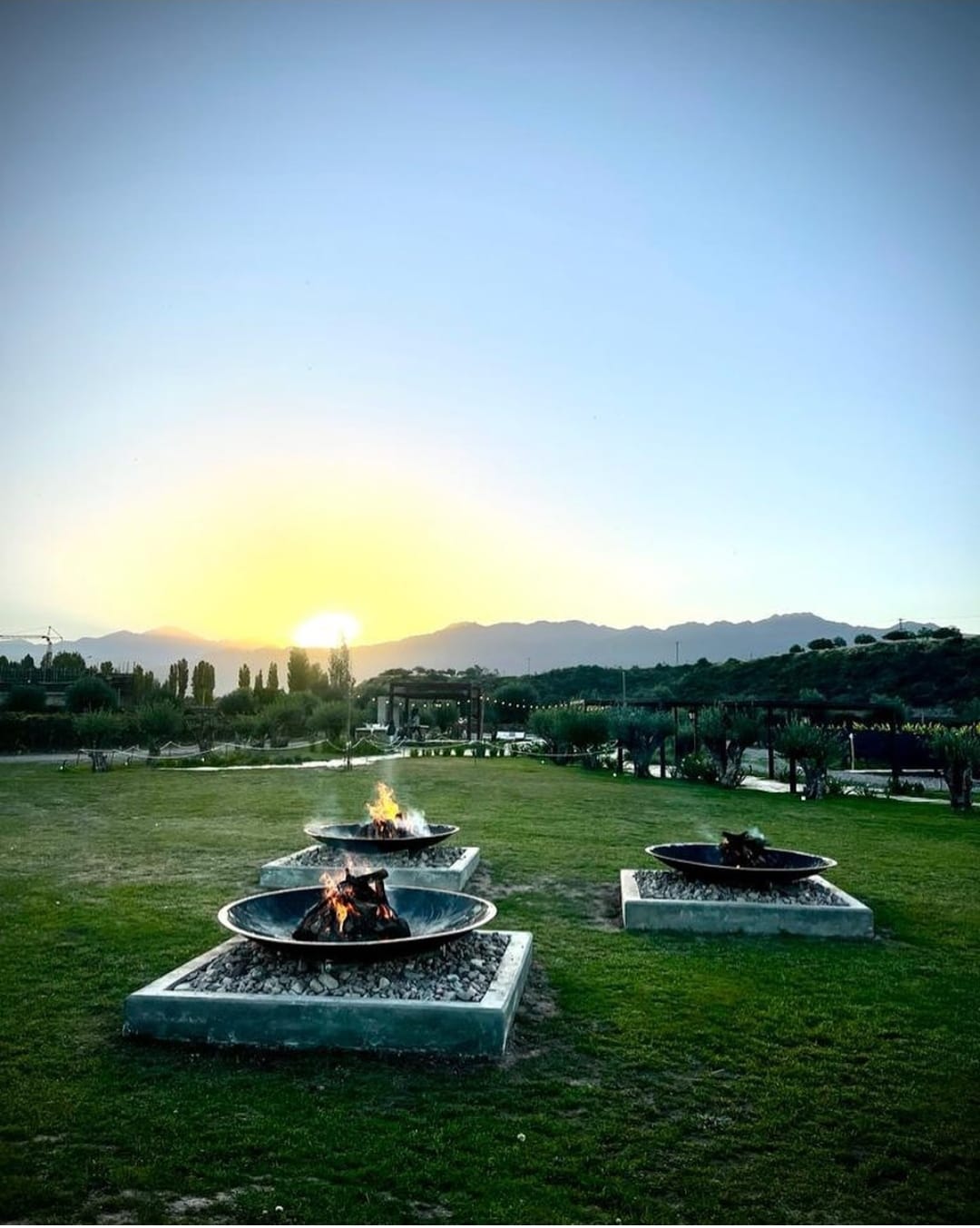 El viaje sensorial comienza desde el punto de llegada, el Meeting Point "Las Aguas", donde una plaza seca de modernas terminaciones y pérgolas dan la bienvenida a los asistentes. Ya en el predio de la plaza verde se puede disfrutar del punto de fuegos, tres fogoneros hexagonales de hierro forjado montados en el parque son el epicentro para el encuentro entre amigos. Toda esta zona se encuentra enmarcada por los viñedos y un gran espejo de agua con la bodega de fondo, un imponente marco de belleza natural para localizar el escenario y disfrutar un festival a cielo abierto.