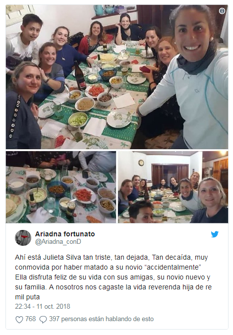 La difusión de las fotos en una celebración de Julieta Silva, la mujer condenada a tres años y nueve meses de prisión por atropellar y matar a su pareja, Genaro Fortunato, el 9 de setiembre del año pasado a la salida de un boliche en San Rafael, Mendoza, desataron la furia de la familia del joven rugbier.