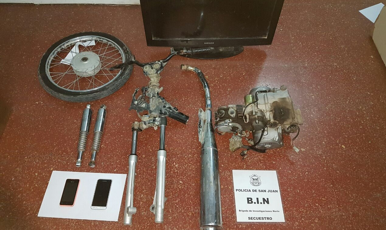 Personal de la Brigada de Investigaciones Norte detuvo en las últimas horas a un menor apodado ‘Caballito’, porque en su casa de Chimbas tenía desarmada una moto Honda 110cc, un televisor, teléfonos y otras cosas robadas en casa de una familia de Chimbas, dijeron fuentes policiales.