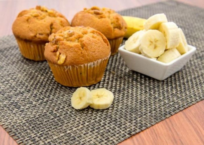Preparación: Batir manualmente los huevos con el azúcar. Agregar las bananas pisadas y mezclar. Incorporar el aceite y esencia de vainilla, también la harina integral y el polvo de hornear previamente tamizados. En moldes de muffins colocar la mezcla y llevar a horno bajo durante 20-25 minutos aproximadamente. Desmoldar y decorar a gusto.