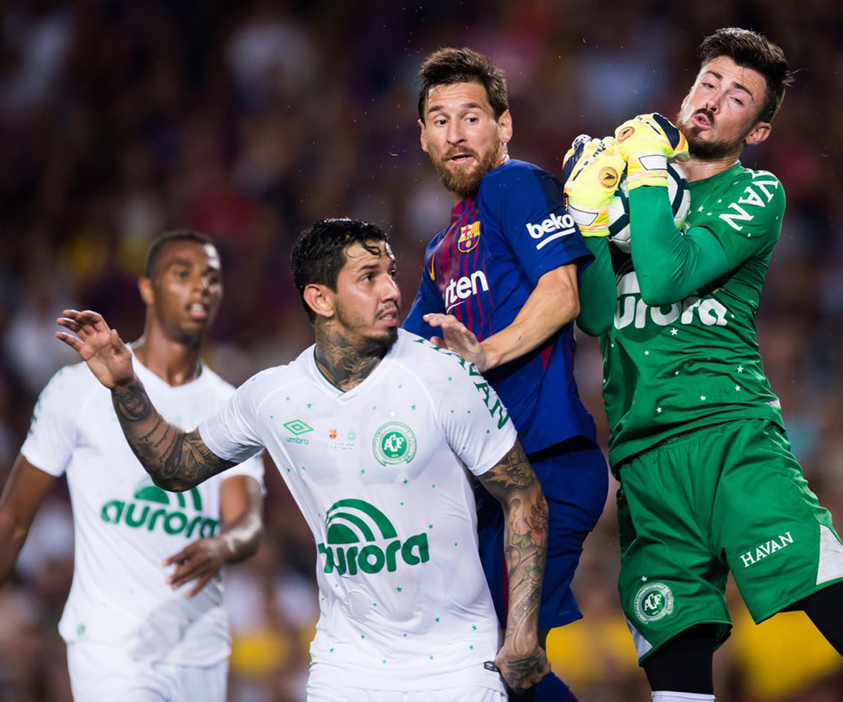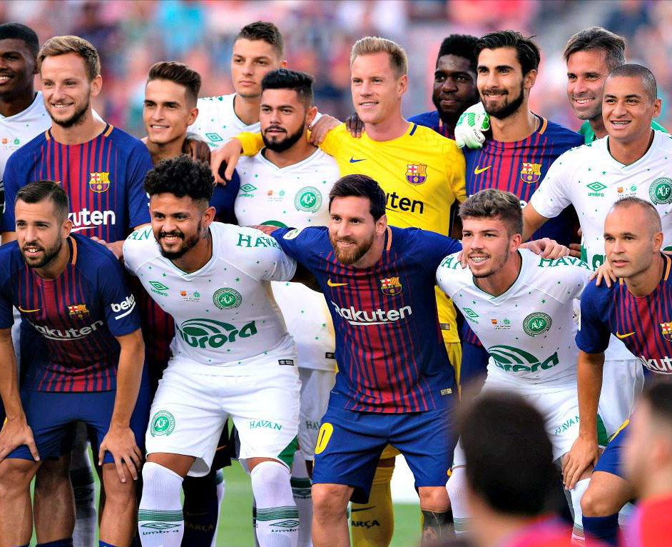 Antes del partido, Messi envió un mensaje en las redes sociales que decía: ‘Hoy (por ayer) en la cancha rendimos homenaje a las 71 personas que perdieron la vida el año pasado y a sus familias. ¡Fuerza, Chapecoense! Estamos con todos ustedes”.
