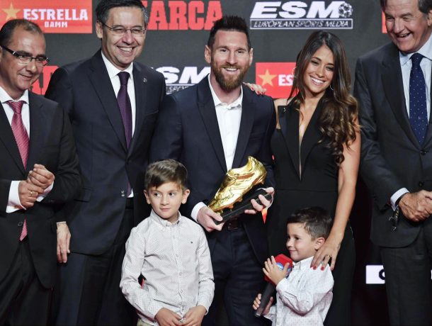 En esta nueva entrega del premio al goleador del año se pudo ver un Messi más familiar, en donde sus dos hijos más grandes fueron los protagonistas del evento al darle el trofeo a su padre. Su esposa, acompañándolo en todo momento, también subió sobre el cierre.