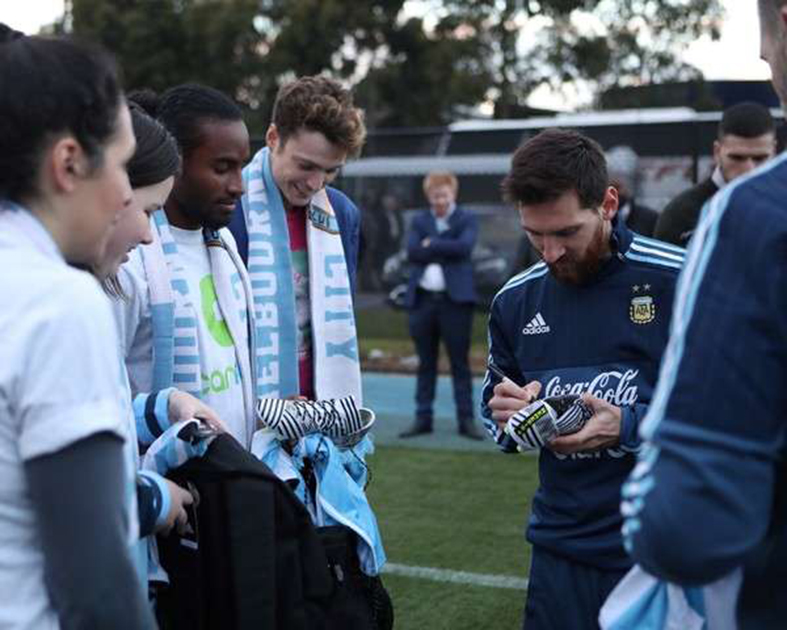Casualmente, los chicos acudieron a la práctica con bufandas del club local Melbourne City, que comparte los colores albicelestes de la Selección.
