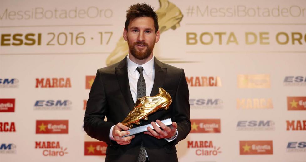 En un acto que se desarrolló en la Antigua Fábrica Estrella Damm de Barcelona, Lionel Messi recibió su cuarta Bota de Oro, el trofeo que lo reconoció como el máximo goleador de Europa durante la temporada 2016/2017.