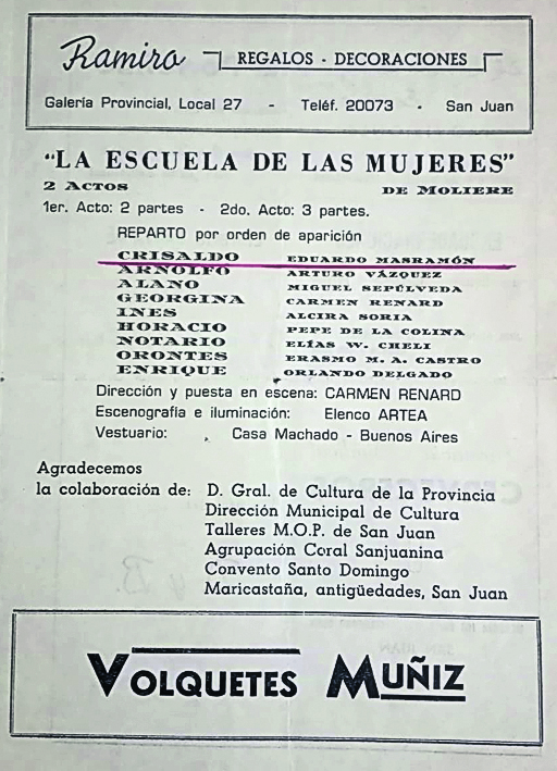 La escuela de las mujeres, de Moliére, en 1974, con el elenco vocacional