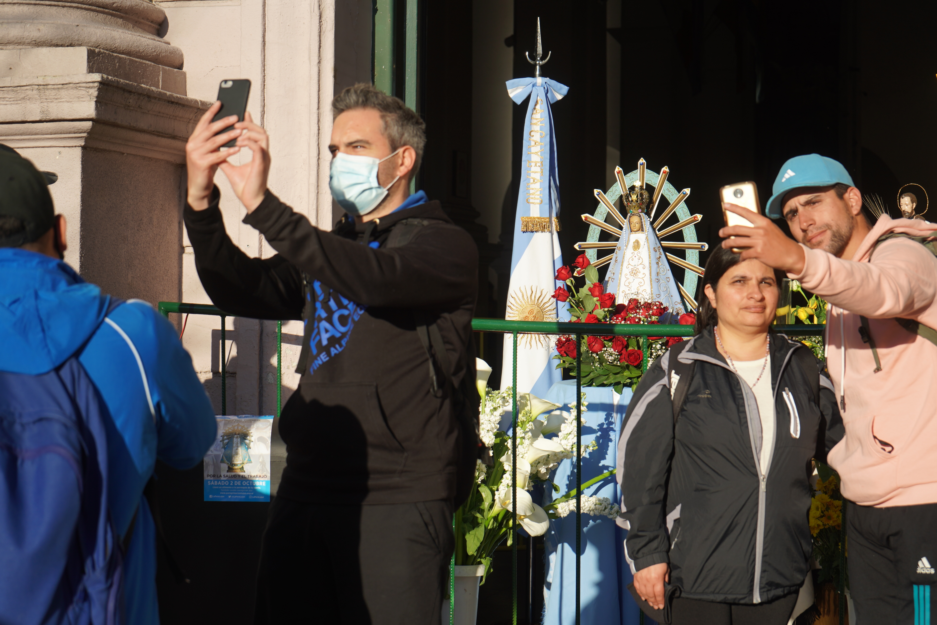 Tras la bendición del obispo auxiliar de Buenos Aires, Juan Carlos Ares, la imagen de la Virgen que acompañará a los peregrinos, salió de la iglesia y será llevada en camioneta hacia Morón, donde la recibirá a las 9 el obispo local, monseñor Jorge Vázquez.