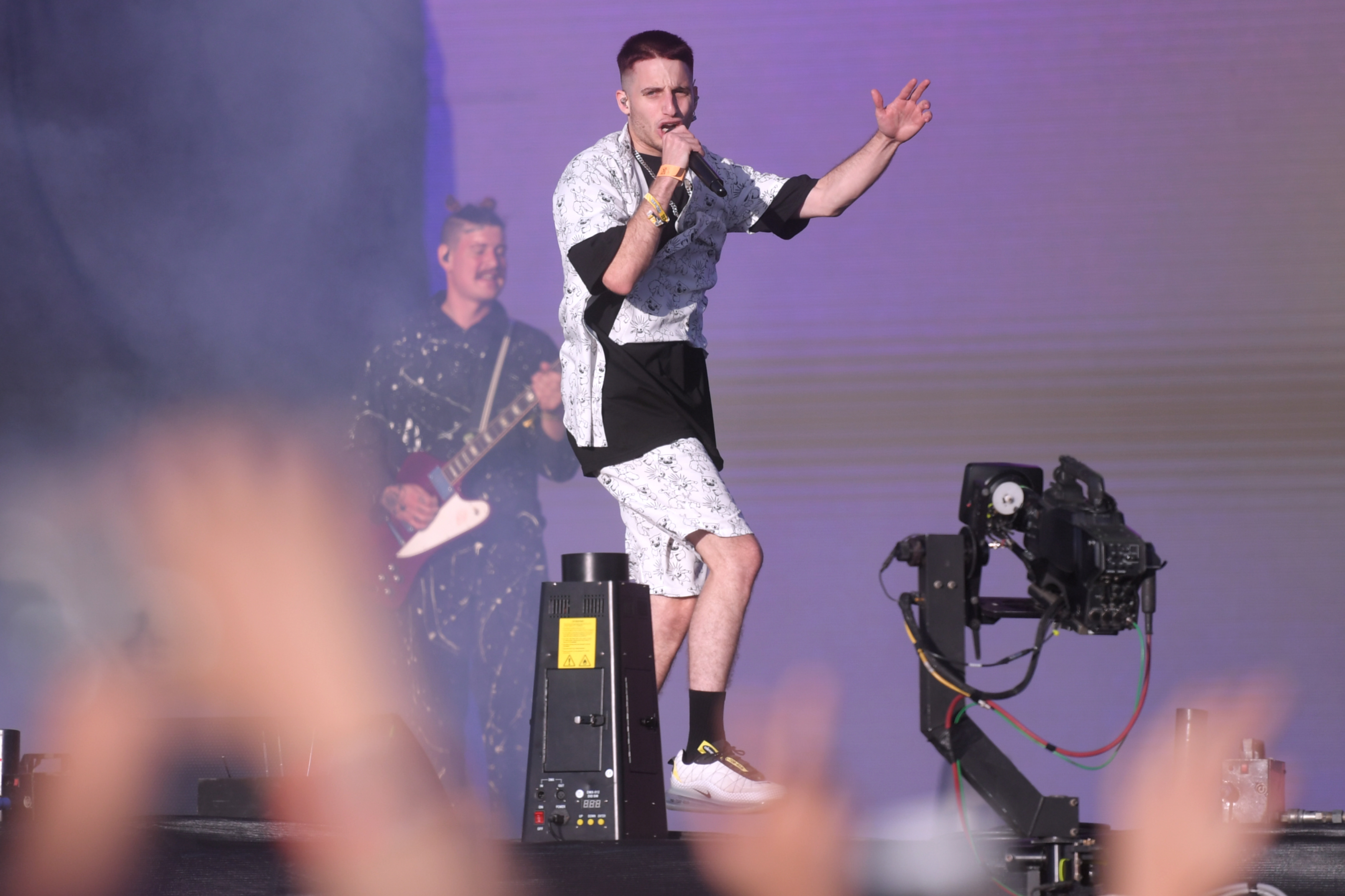 Hacia la noche, antes de Miley Cyrus, pasó por el festival el rapero neoyorkino A$ap Rocky con una rimbombante puesta en escena de grandes y coloridas gráficas, máquinas lanza humo y llamaradas de fuego; y un radicalizado estilo por el que desfilaron los conflictos raciales, la violencia, el amor y hasta algún clishé del género.