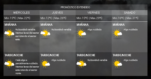 Para el jueves, la máxima será de 26ºC y trepará hasta los 29 y 31 grados, viernes y sábado, respectivamente.