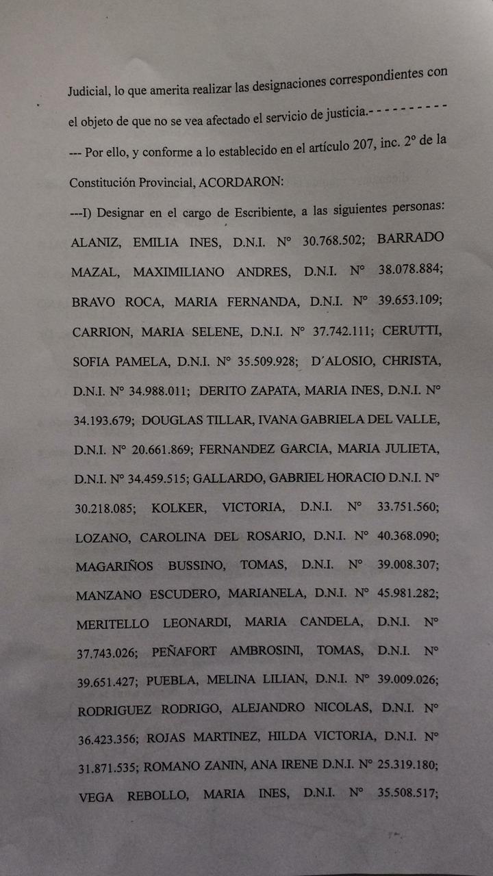 Fueron un total de 546 personas que aprobaron y en esta oportunidad, publicaron los primeros ingresantes. Por su parte, también difundieron los nombres de los empleados judiciales que fueron ascendidos en diferentes agrupamientos.