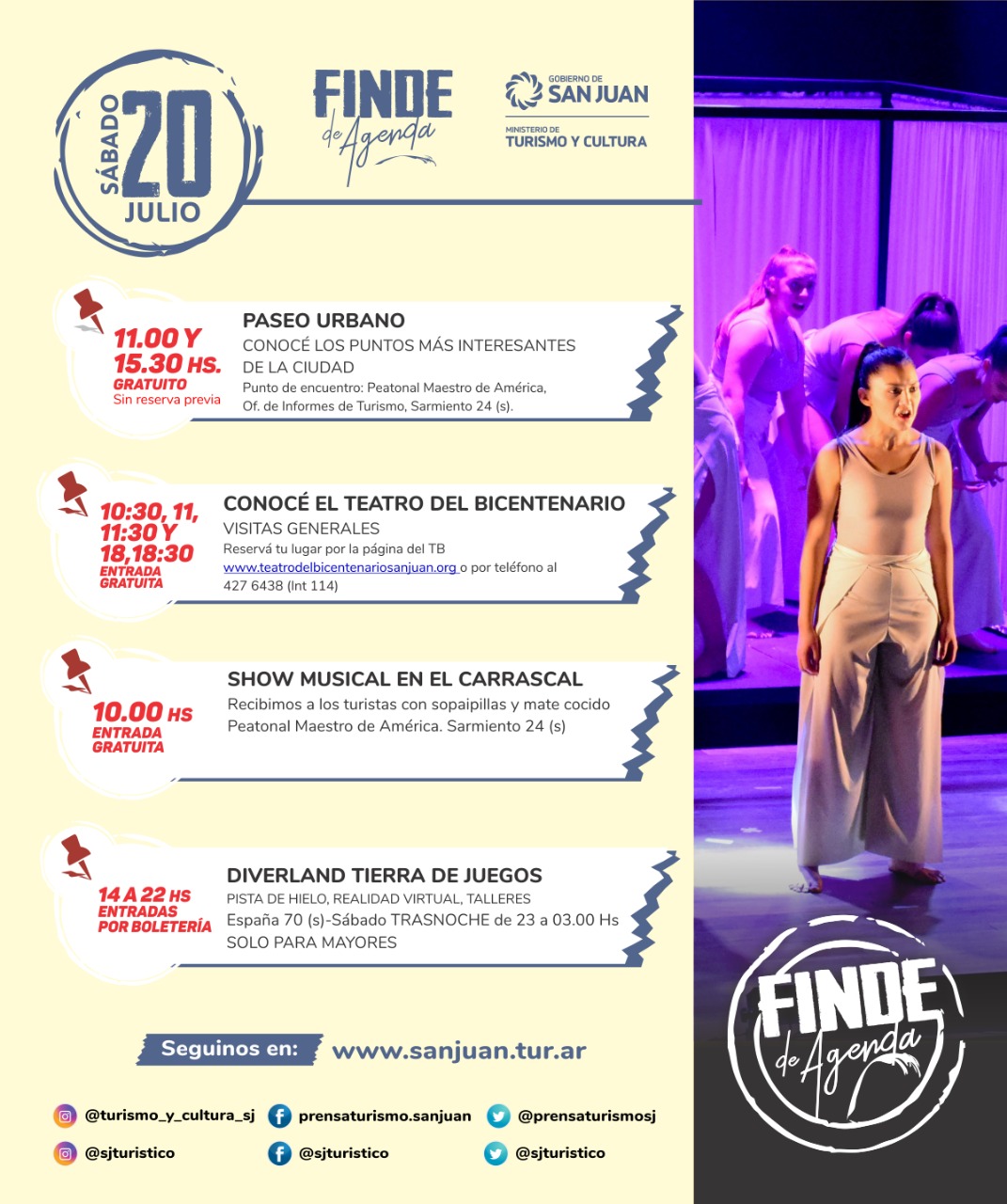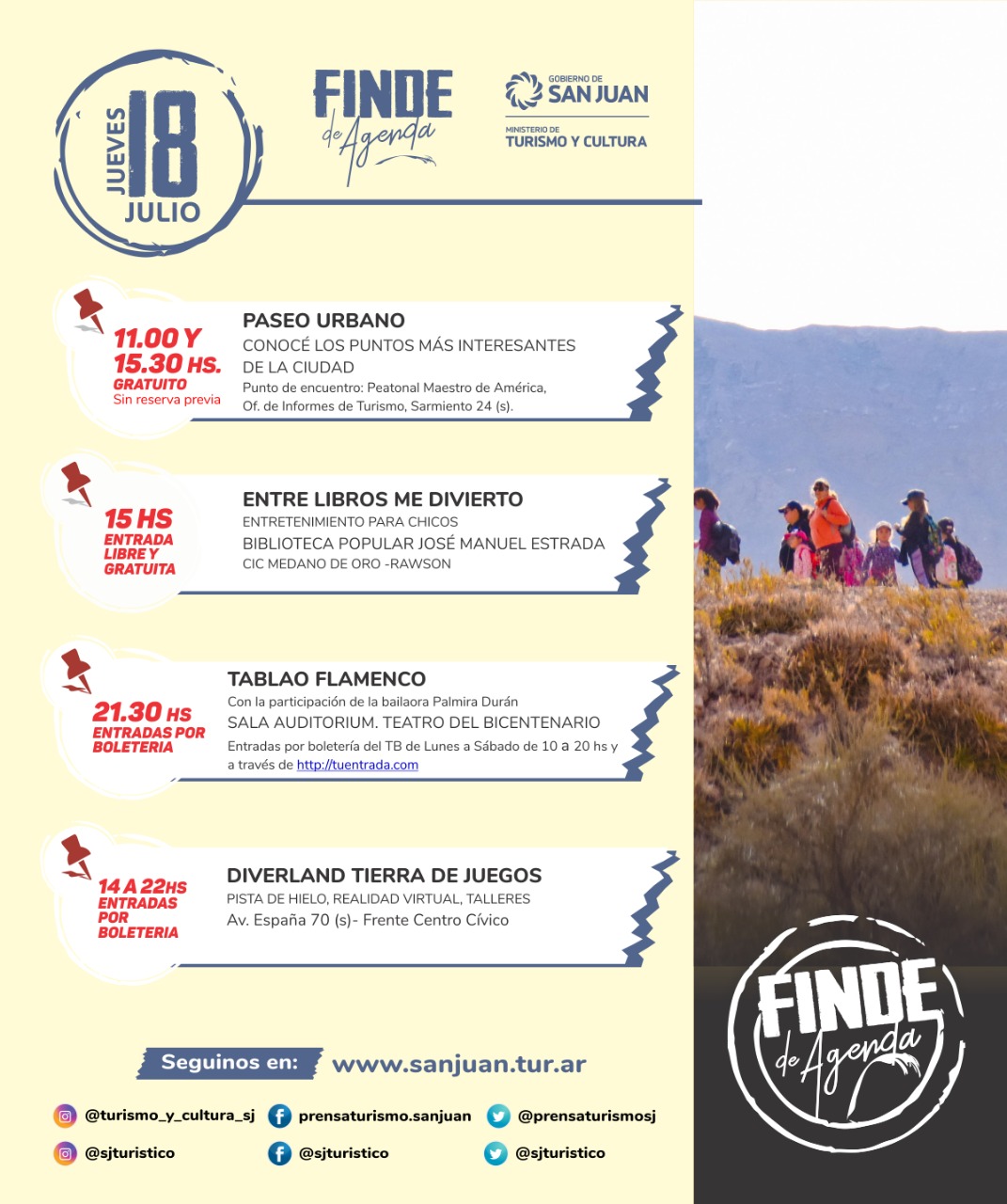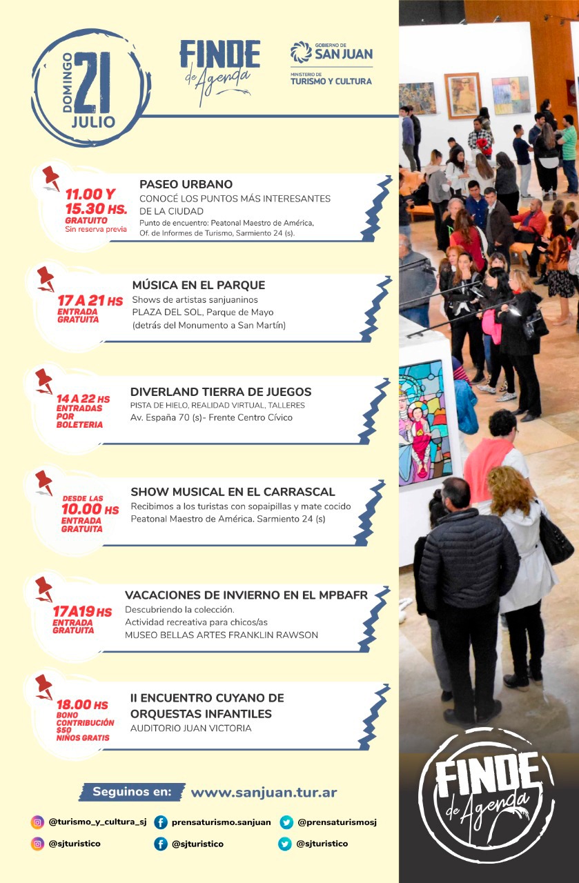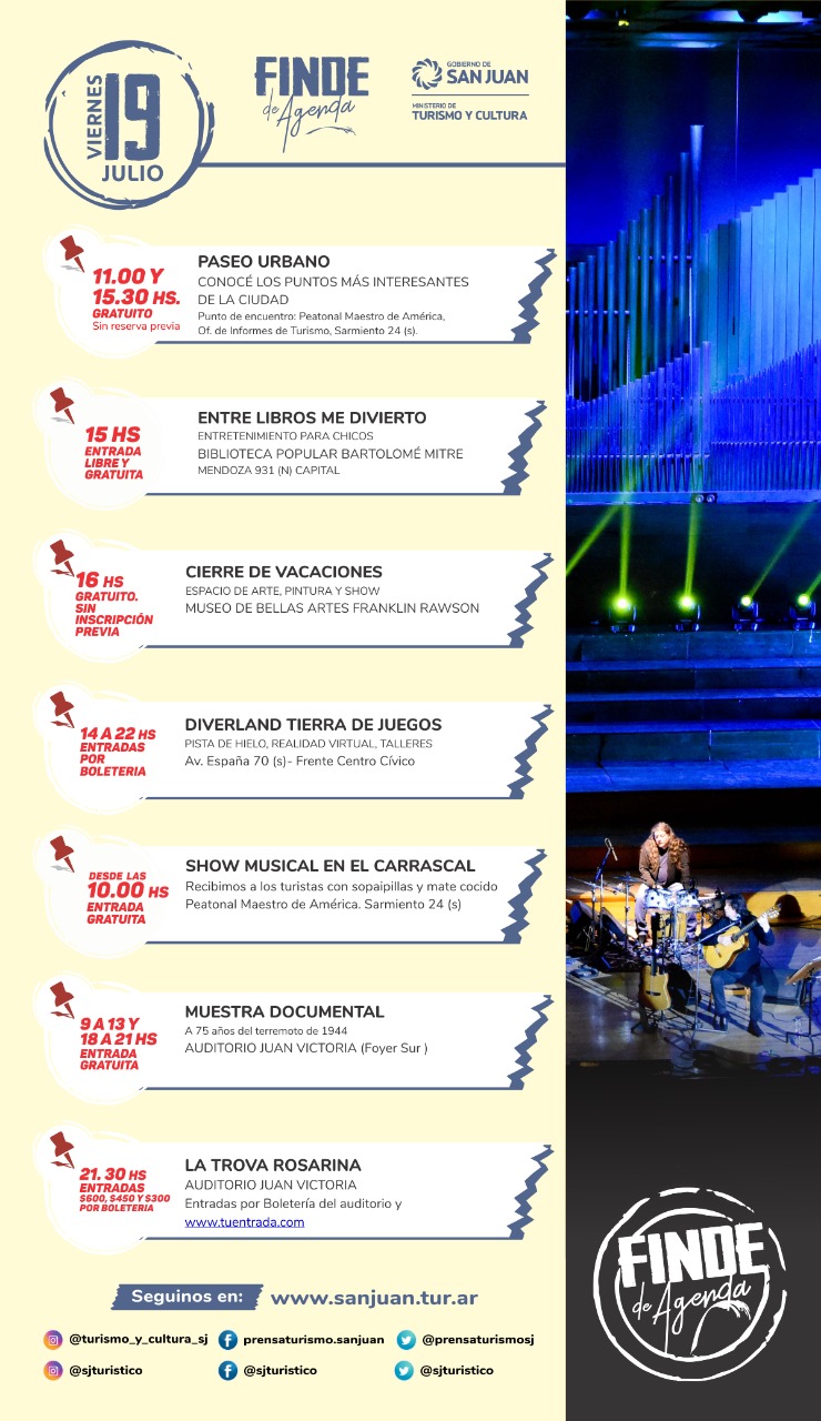 Diario de Cuyo | HOME | Noticias | TURISMO Mirá todas las actividades que hay este fin de semana Por Redacción Diario de Cuyo 17/07/2019 · 0:00 Escuchar la noticia Escuchar la noticia Your browser doesn’t support HTML5 audio TURISMO Ver los comentarios ›