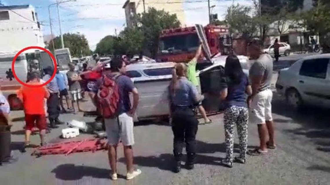 Un auto y una camioneta chocaron y tres personas debieron ser rescatadas por los bomberos con heridas leves. Los testigos captaron varias imágenes de ese momento y en una ellas se ve una silueta rara que se encuentra parada en la puerta de la ambulancia mirando la escena, pero no se puede determinar con detalle de qué se trata.