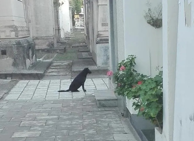 Según relató el vecino que difundió las imágenes, el perro apareció de la nada y se sentó en el medio de un pasillo mirando hacia un punto fijo. Al difundir la foto, aparecieron más transeuntes que aseguraron que el animal aparece todos los días a las 18 de la tarde y repite el comportamiento.