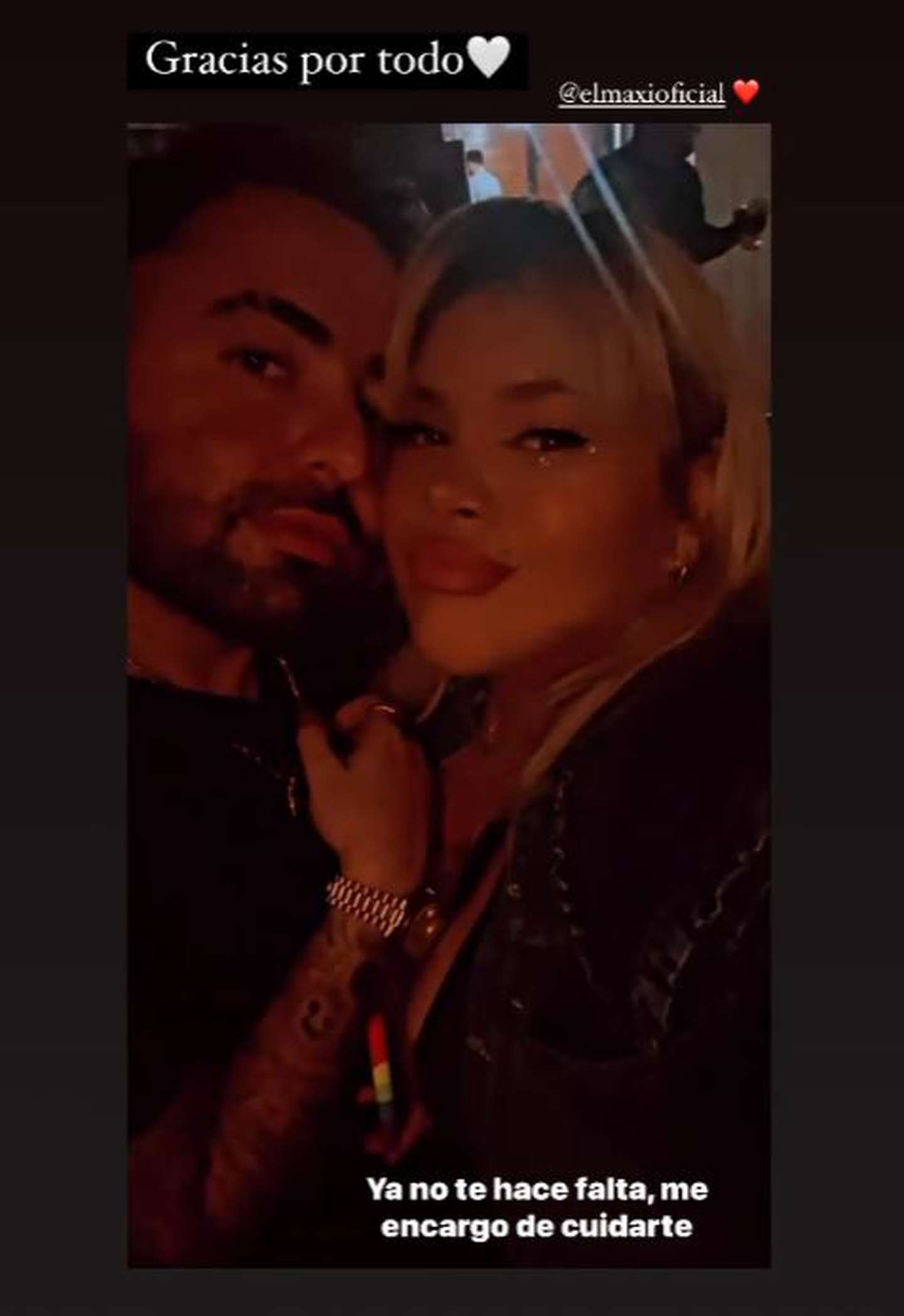 “Gracias por todo”, escribió en la primera historia de Instagram que le dedicó a su flamante novio. La imagen en cuestión muestra a ambos muy enamorados mirando a la cámara.