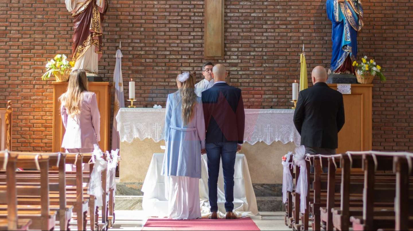 La ceremonia tuvo lugar a las 11 y fue presidida por el padre Marcos, quien viajó desde Córdoba para bendecirlos. Todo se desarrolló en un clima de mucha tranquilidad e intimidad. Solamente participaron los padrinos, dos amigos muy cercanos. Una vez finalizada la ceremonia, Abel y Mora viajaron a una estancia en Máximo Paz donde se realizará la fiesta.