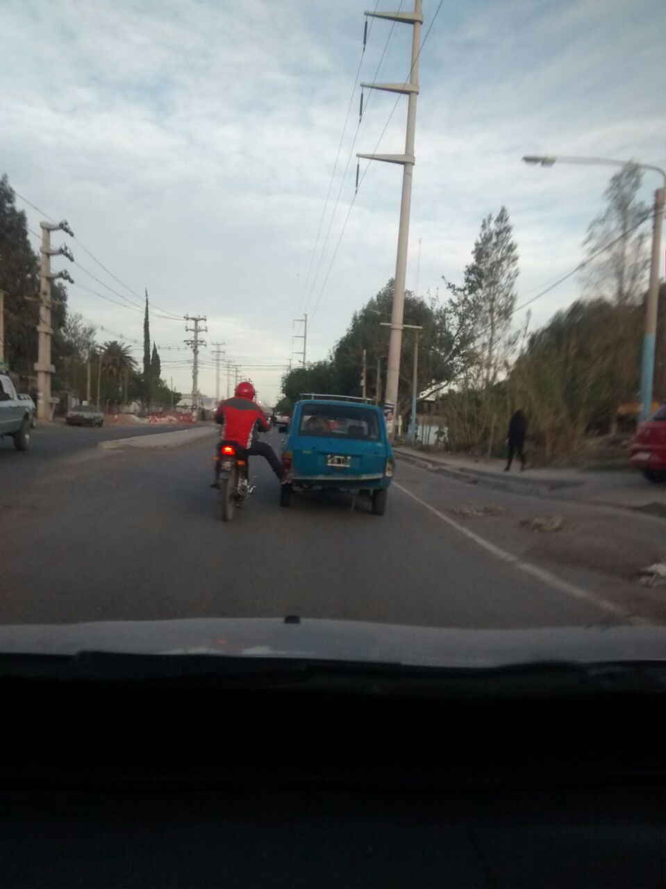 Un lector envió una imagen y el siguiente comentario: "Que grúa ni grúa…lo remolcaba con la moto.. esto fue Calle 5 antes de Lemos".