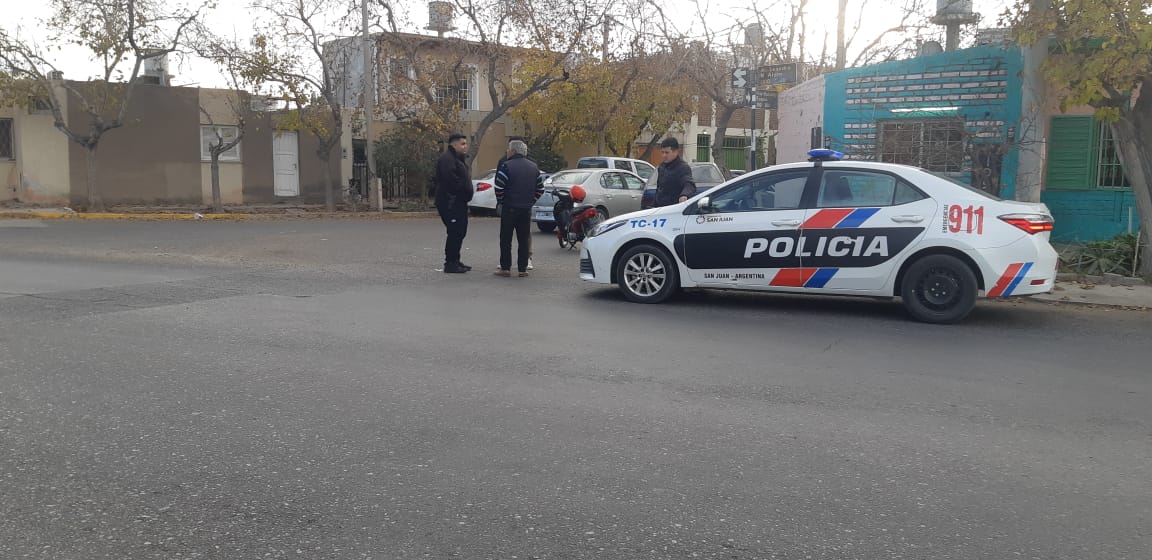 Un accidente generó caos esta mañana en una esquina de Capital. Los involucrados fueron un motociclista y un remisero. Como consecuencia del hecho, el conductor del vehículo de menor porte fue trasladado al Hospital Rawson, aunque con daños leves.