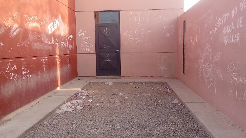 Alumnos de la Escuela Gral. Mosconi del barrio Natania XV enviaron fotos y un mensaje: "Somos alumnos y queremos mostrarles en las condiciones paupérrimas que se encuentra el establecimiento, que por cierto tiene poco tiempo de inaugurado".